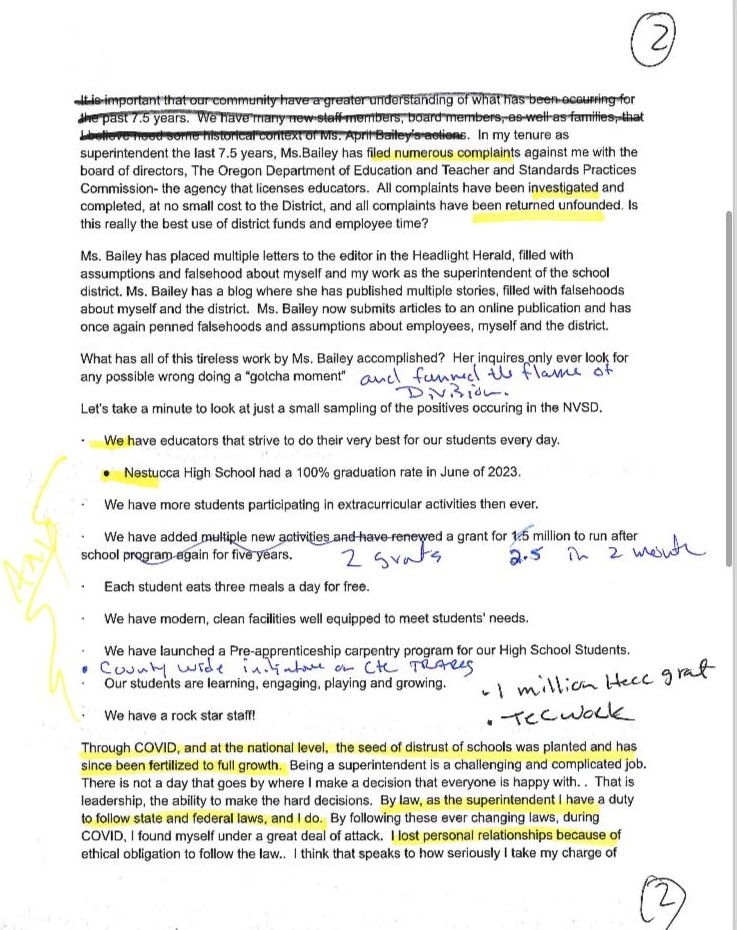 My goal in any article or post concerning Nestucca School District issues was never to attack individuals, but to bring up important issues that were unknown to the public. Tax payers and parents deserve accountability and educational excellence in their investment in public schools. Anything that diminishes the safety, academic rigor, or moral character of children in public schools should be publicly scrutinized in order to reset those foundational standards,