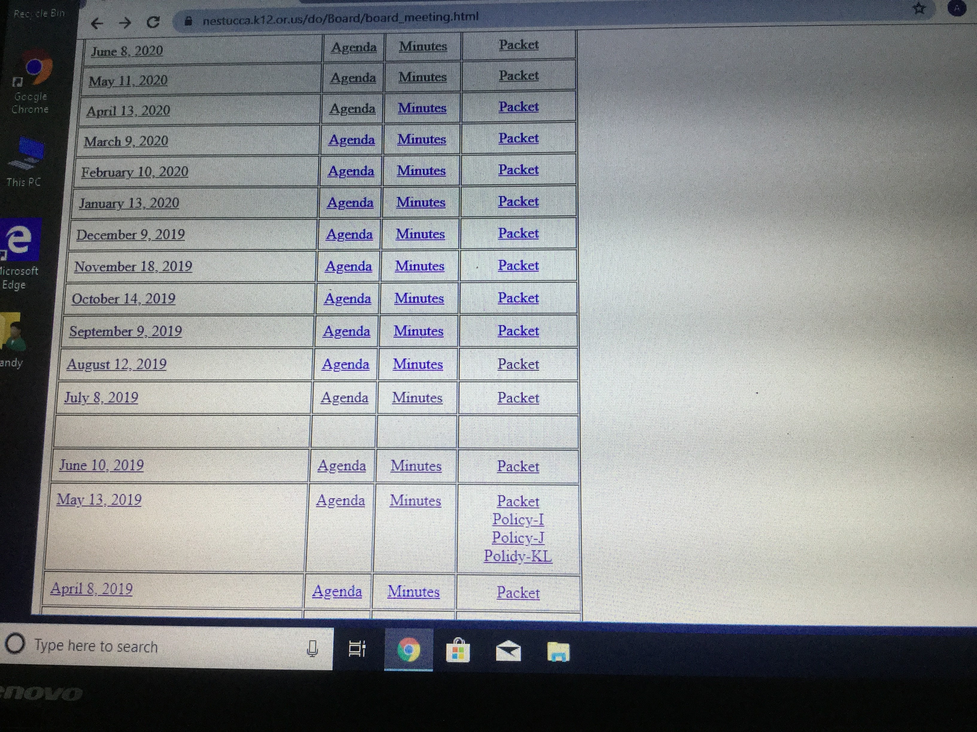 Up to this point, the only reason to find my behavior “confrontational” is if the board and Superintendent believed no one should attend their meetings or have related questions to the meetings. That all changed in spring of 2019. In spring of 2019, Nestucca Valley School Board was going through an obscene amount of policy adoption. This was necessary, according to the Superintendent, because the current policies were outdated. These update in policies required the meeting postings to be several pages longer, so it was hard to ignore the many pages taped to the school door. Curiously, the actual policies (required by law to be available to the public before adoption) were not on the school website, just the list of policies to be changed in the meeting agendas.
