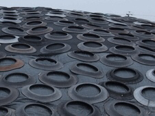 There are several different ways to store the grass harvest, but most often it simply gets piled up. We call it a silage pit. It generally consists of a cement floor surrounded by cement blocks. The grass is piled and compacted over and over. Often times the grass towers several feet above the cement blocks with a slope to the front of the pit. When the harvest is finished the pit has to be covered with plastic. The plastic is held down by tire sidewalls. This is where I usually come in. Yes, for several years I would climb that black tarp covered grass hill with a truck sidewall in each arm, and carefully place the tires all over the tarp. I have clocked it with my running app, and it can be the equivalent of 5 miles over 8 hours with 40 pound weights. It usually took my husband and I two full days of this work. Did I mention the tarp is black plastic? Needless to say this is a hot, dirty job.